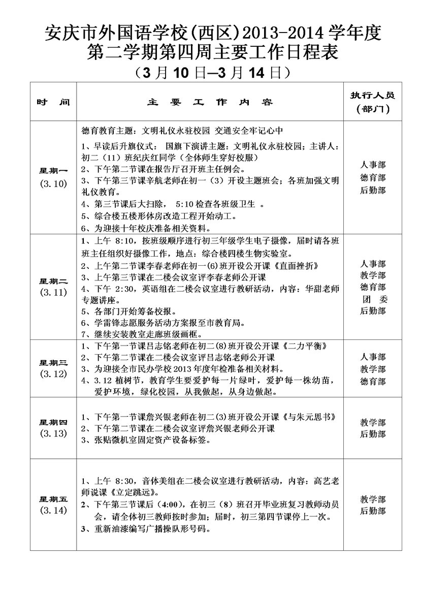 第四周主要工作日程表