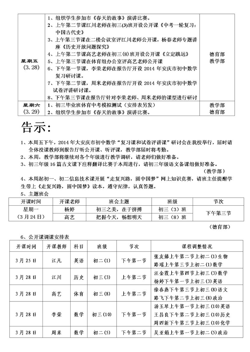 第六周主要工作日程表