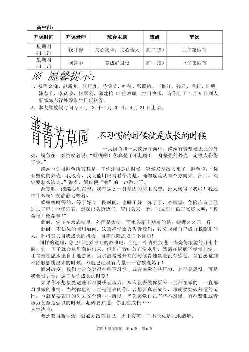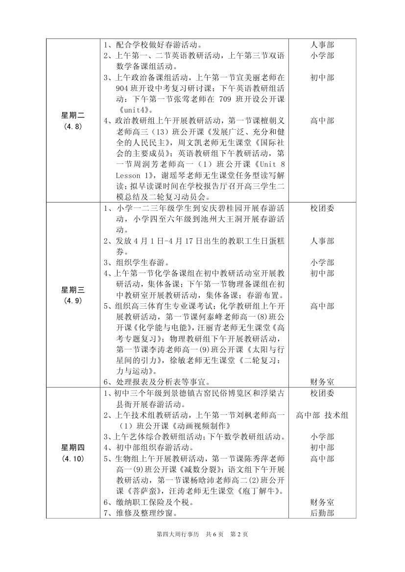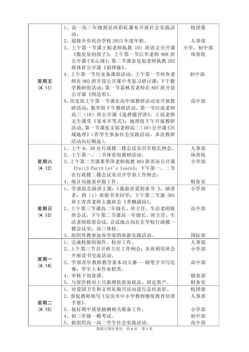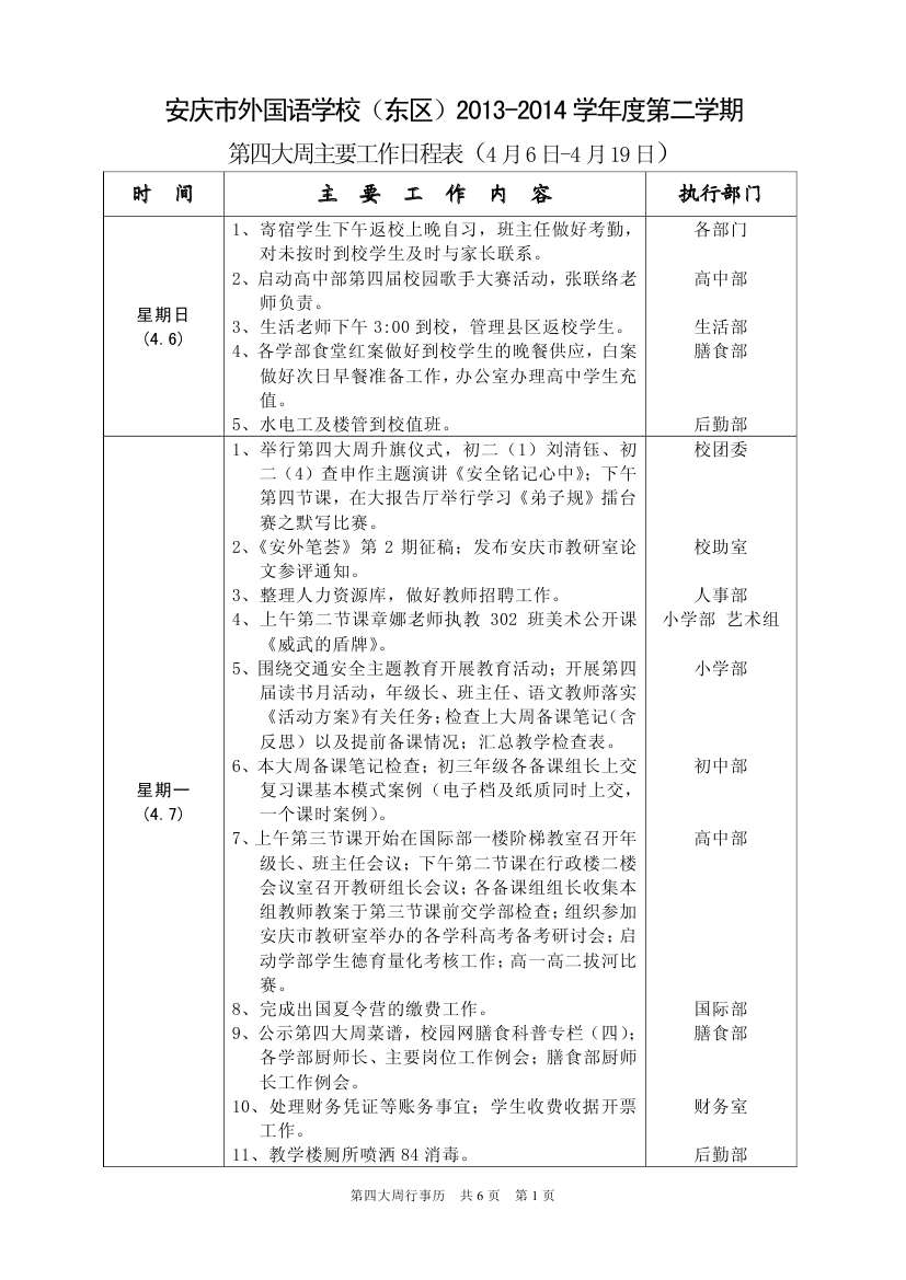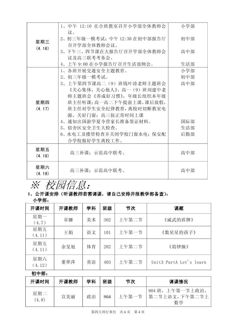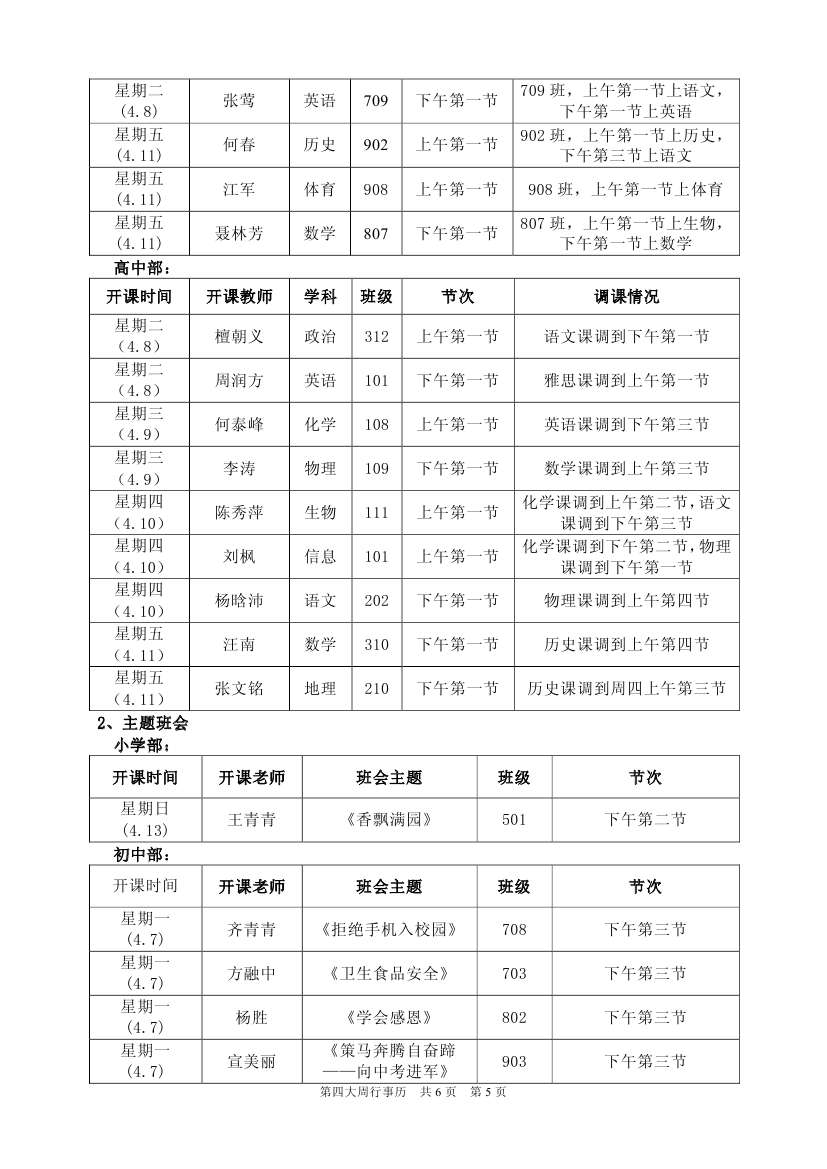 第四大周行事歷
