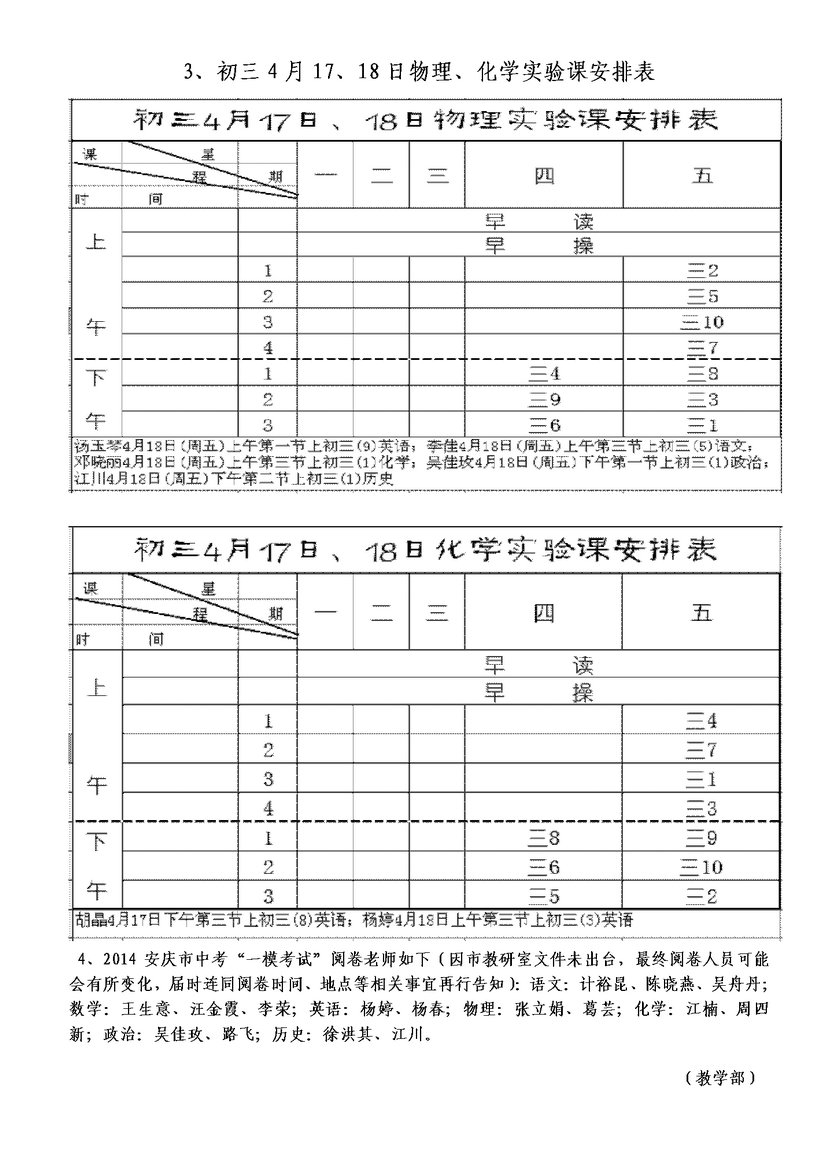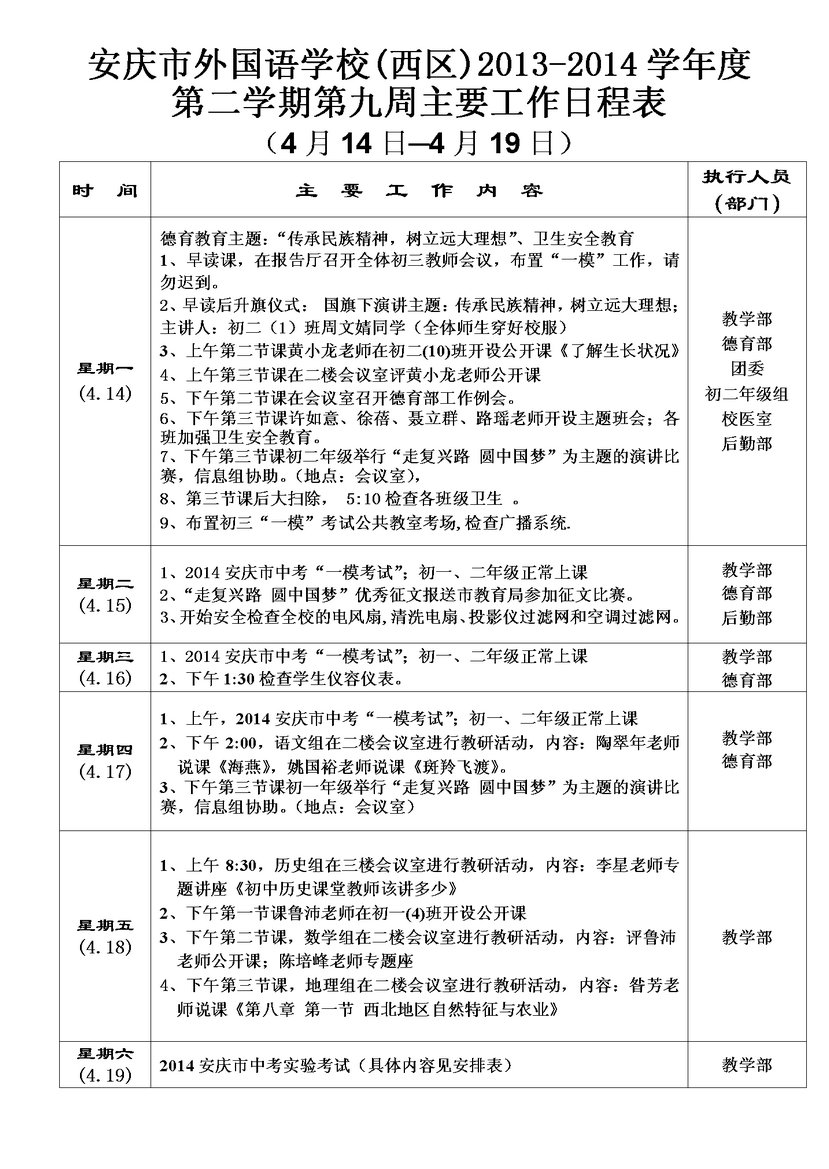 第九周主要工作日程表
