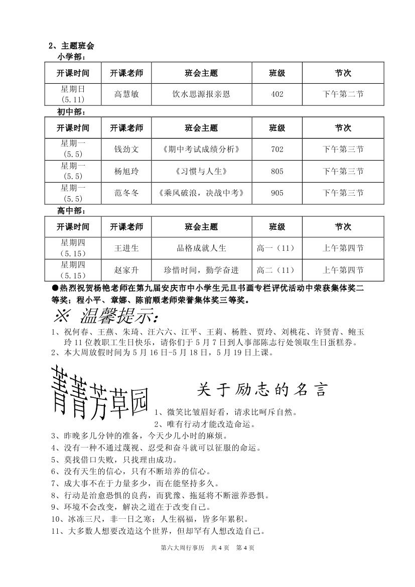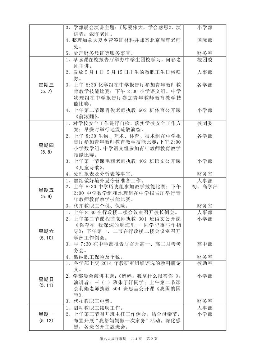 第六大周行事歷