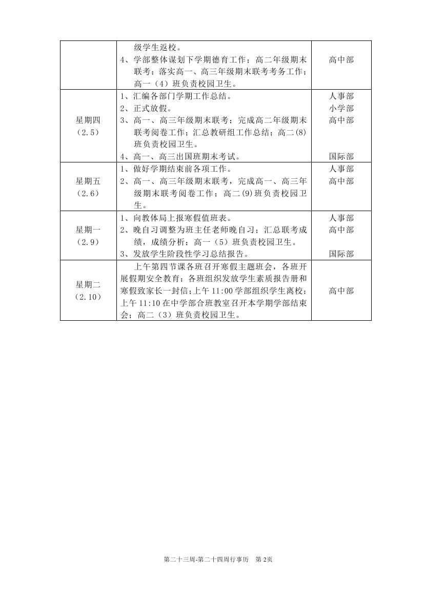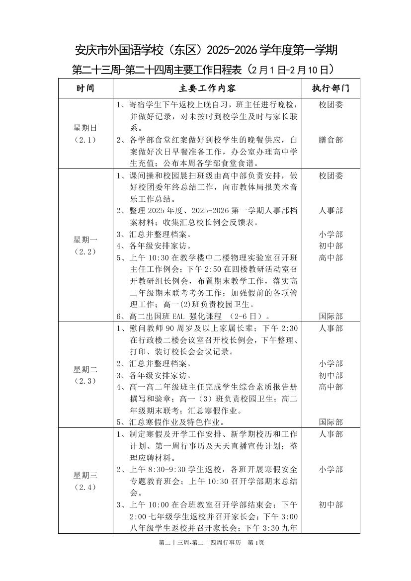 2025-2026學年度第一學期第二十三周-第二十四周行事歷(東區(qū))